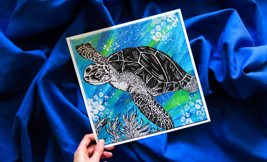 Sea Turtle Original Art Print, Wildlife Collection 10x10
