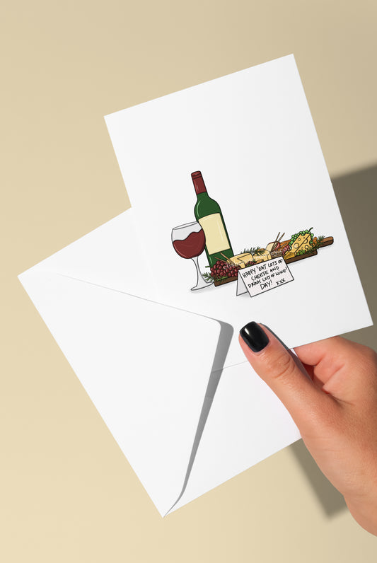 Happy 'Eat Lots of Cheese and Drink Lots of Wine' Day! Greeting Card A5