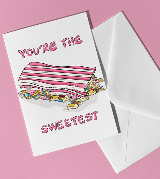 'You're The Sweetest' Greeting Card A5 - Available in 2 Colours: Blue or Pink